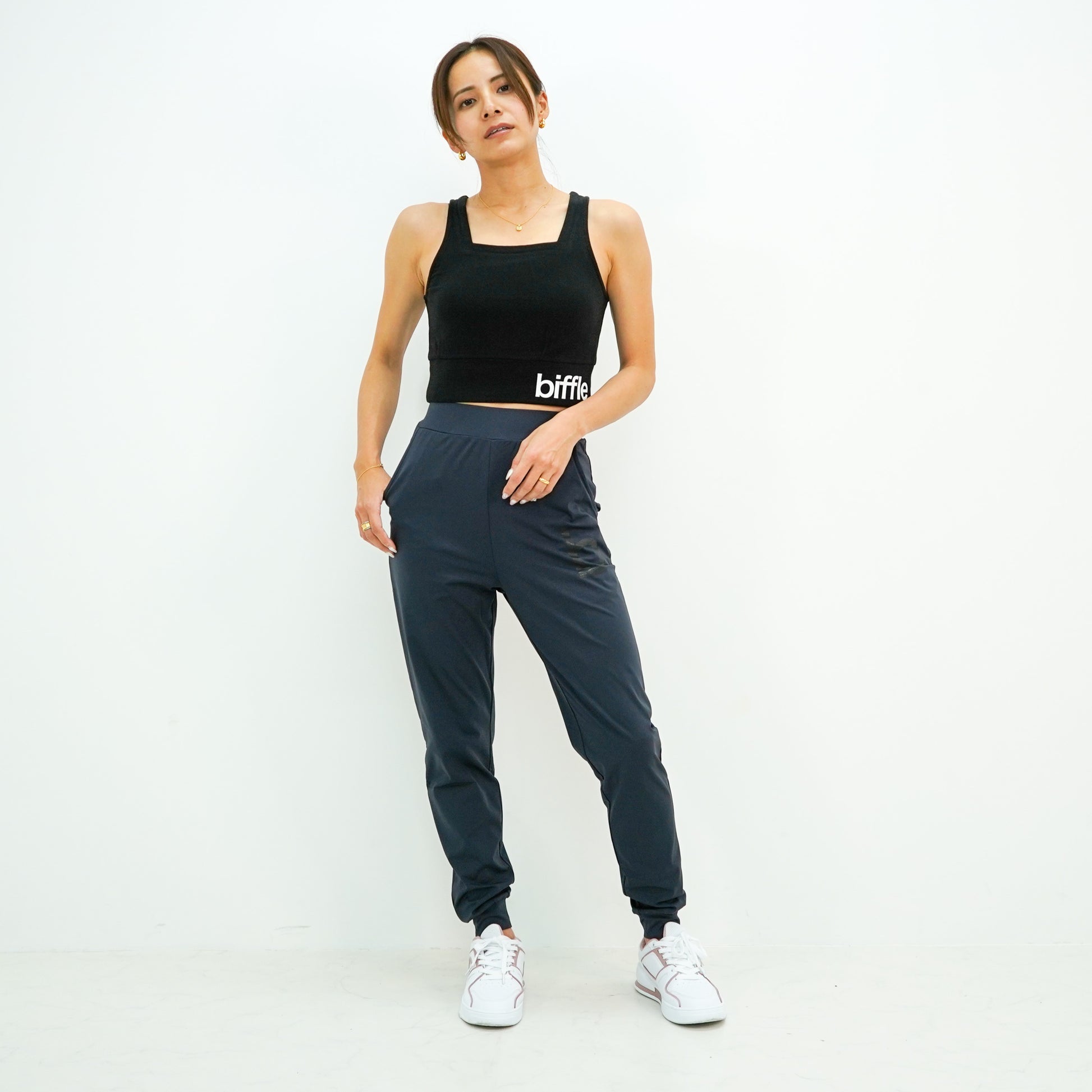 合わせるボトムスによって変化を楽しめ、フィットネスからカジュアルまで幅広いシーンで活躍する1枚です。